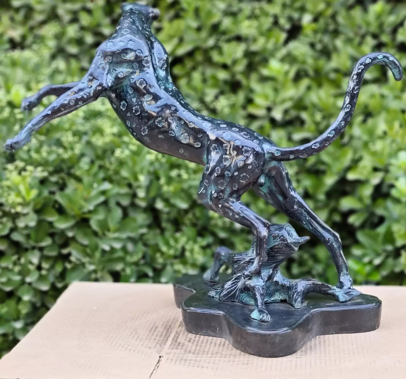 Designer Bronze and Marble Statue of Leopard for Home Decor